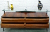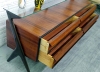Stunning, 1960's rosewood sideboard. Very good condition, minor wear consistent with age and use. 63 in. wide x 30 1/2 in. high at glass shelf x 20 in. deep. This exceptional sideboard is made of highly figurative rosewood with ebonized mahogany accents. The design works beautifully with Mid-Century Modern or Contemporary furniture. Note the thickness of the drawer fronts and drawer sides as well as the tongue groove joinery. This sideboard is every bit as well made as it is designed.