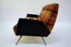 Sofa upholstered in " fantasy" Plaid Tartan fabric. Italian fifties Design.
