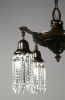 Circa 1925 Pan fixture made by Lightollier’s “After Sunset” collection. A darling light fitted with notched crystal and Sheffield-style hooked arms in a deep bronze finish. Re-wired and ready to hang.