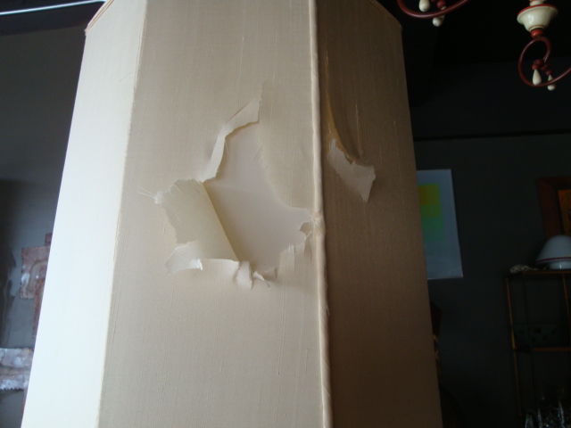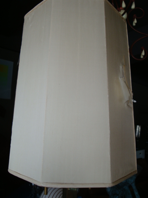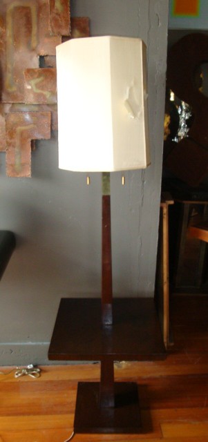 Tommi Parzinger Parzinger Originals Lamp Table. Integrated lamp and table with original octagonal shade. Table surface is 18 inches square and 19 1/4 H. Base is 12 inches square. Original silk shade is 12 1/2 wide octagon and 17H. Two pull-chain sockets and one 3-way up light. all brass fittings. All original condition - needs restoration.