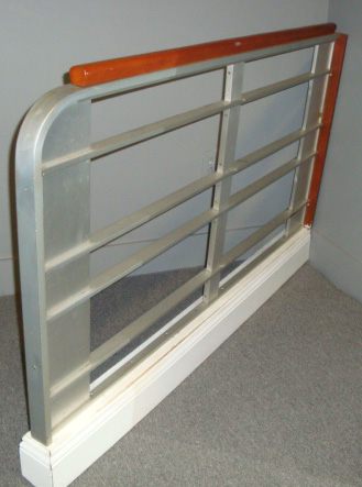 The SS United States which was known as "The Big U" was built in 1952 for the United States Lines and was hailed as one of the achievements of US Shipbuilding Art. She is the largest ocean liner to date built in the United States and still holds the record for the fastest Westbound Transatlantic Crossing in 1952. This Aluminum and wood railing section is from this ship and is 60" long x 38" high including the floor molding which is a later addition. $2200.00