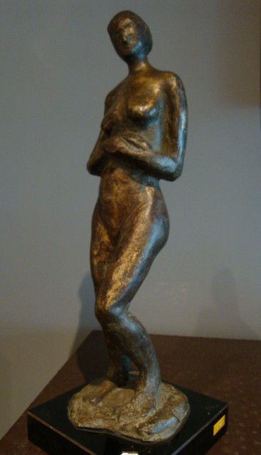 Female nude sculpture of bronze on black laminate base. Artist signed on bronze - Licht.