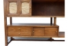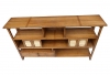 A fine-quality light wood room divider with sliding doors and open shelves. Console also features brass handles and a finished back and can be floated as a room divider. In excellent vintage condition. Unmarked. 66" L x 13" W x 39" H