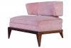 A fabulous pair of 1960s club chairs with splayed tapering feet and great lines. In the spirit of Robsjohn-Gibbings, Dunbar, Billy Haines, and James Mont. Although they are unmarked, this pair of chairs are top quality. Seats, 16"H. Age wear.
