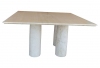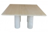Solid marble square table with four cylindrical legs. Very heavy and minimalist by design. Colonnato Table, Mario Bellini, Cassina, 1977.