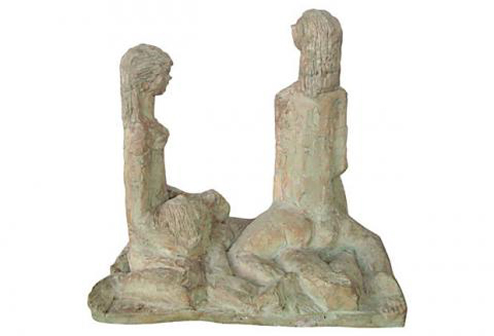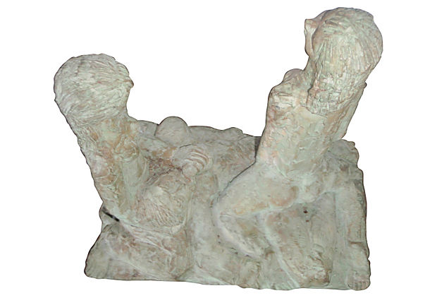 Erotic figural group depicting a Roman Bacchanale by Florida artist Dotson. In excellent vintage condition. Dotson was an exhibitor at the renowned Grove House Studios in Coconut Grove, FL. He gained much attention acclaim after being featured in Playboy magazine in the 1970's. He often used his wife Danielle, a ballerina, as a muse. He died in the Florida Keys in the 1980's. Illegibly titled on base. 12" L x 8" W x 12.5" H
