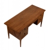 Mid century modern Broyhill Brasilia desk. One of the most beloved collections from the American mid century canon. Designed by Oscar Niemeyer for Broyhill. Vintage 1960s. Walnut wood construction with original brass pulls. The desk features Brasilia's signature arches on the left and right sides. Finished back side is embellished with a cane veil over the knee hole. We also have a set of Brasilia commodes (sold separately).