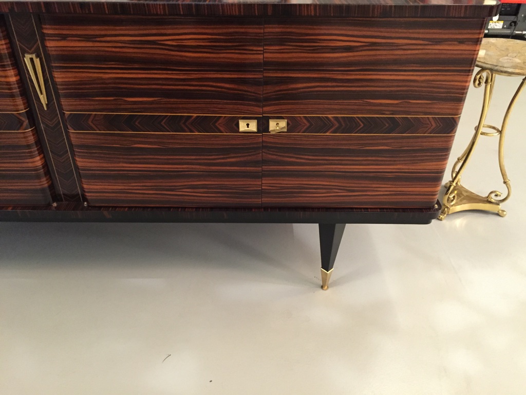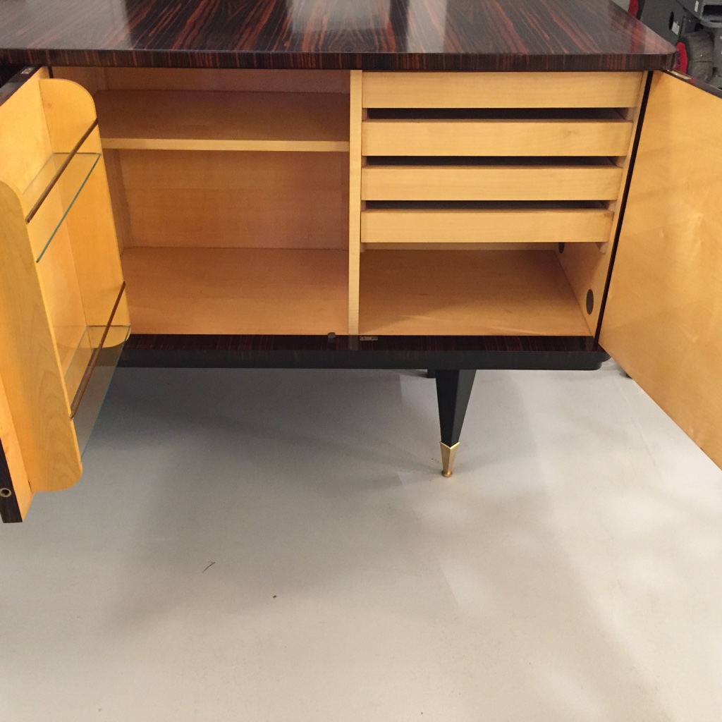 French Art Deco Exotic Macassar Ebony Buffet With Dry Bar, C