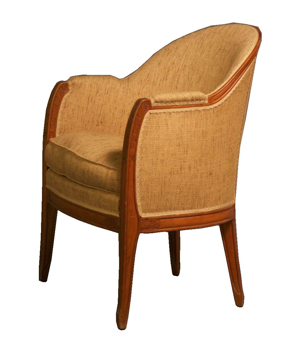 Early Classic French Art Deco pair of armchairs in sculpted pearwood by Leon Jallot. This model was presented by the designer in the office for an art collector at Le Salon d'Automne, 1914. They are pictured in the portfolio from that exhibition. Please see reference photos.