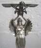 This important Aviation trophy was awarded in 1934 to Dr. John D. Brook known in the era as “American Most Prolific Flyer”. In 1933 he completed four years of consecutive daily flights. The 16 ¾” high trophy, which is mounted on a brown Bakelite base, has three eagles on a raised on a circular plate, their wings holding a large ball. A winged female figure, nude from the waist up, holds aloft a vintage single engine airplane all in chrome plate. The engraved plate on the Bakelite base reads “To Dr. John D. Brook in Recognition of his Contributions to Aviation, by Women’s National Flying Corps, Nov 15, 1934". The base is marked “Goldman JLRYCO KCM”. The trophy is in very good condition.