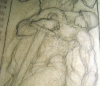 This 1930’s Austrian art deco pencil drawing is a study for a monument by Heinrich-Karl Scholz (1880 - ). Scholz was well known in the first half of the 20th Century as a sculptor and his bronzes have sold at auction in Europe and America. The drawing, which depicts two helmeted nude figures, one with a sword inside an alcove with inscriptions on either side, is annotated 1:5 indicating the final sculpture would be almost five feet tall. The drawing measures 17 3/8” x 11 ¾” and is presented matted in a brown wood frame measuring 21 ½” x 17”. The drawing is signed on the lower right “H.K. Scholz 1930” and has his blindstamp on the lower left.