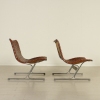 A pair of armchairs, steel structure, seat and back made of woven leather. Designed by Ross Littell (1924-2000) for ICF. Model: PLR 1. Manufactured in Vignate, Italy, 1960s-1970s.