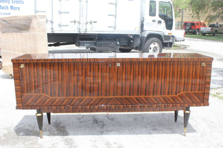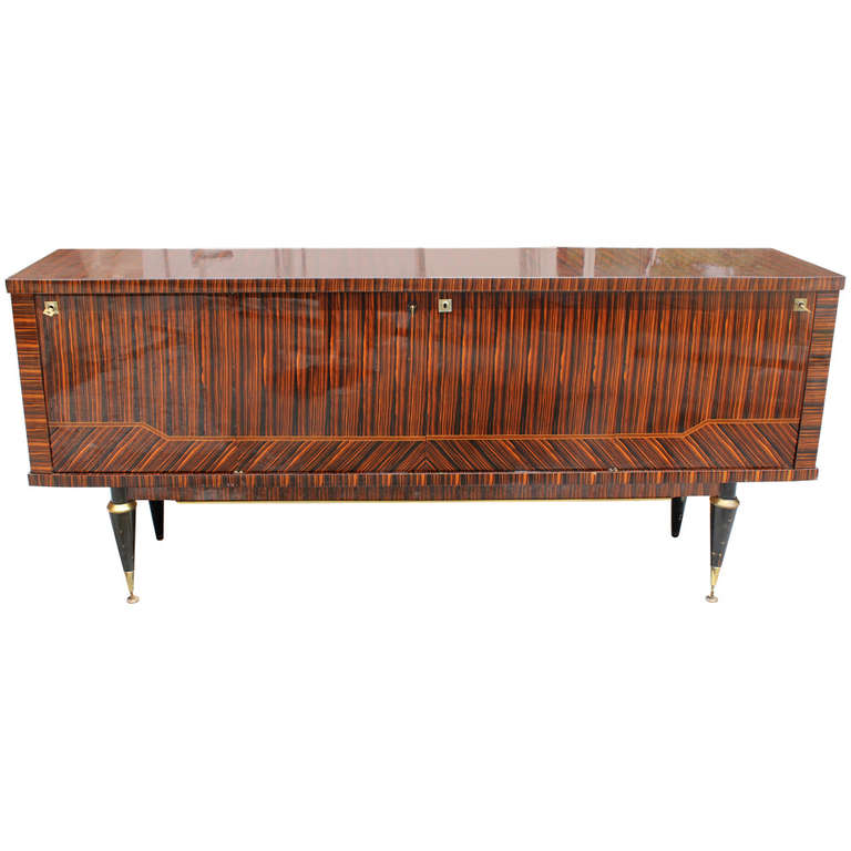 A French Art Deco Exotic Macassar Ebony Buffet, Finished Interior.