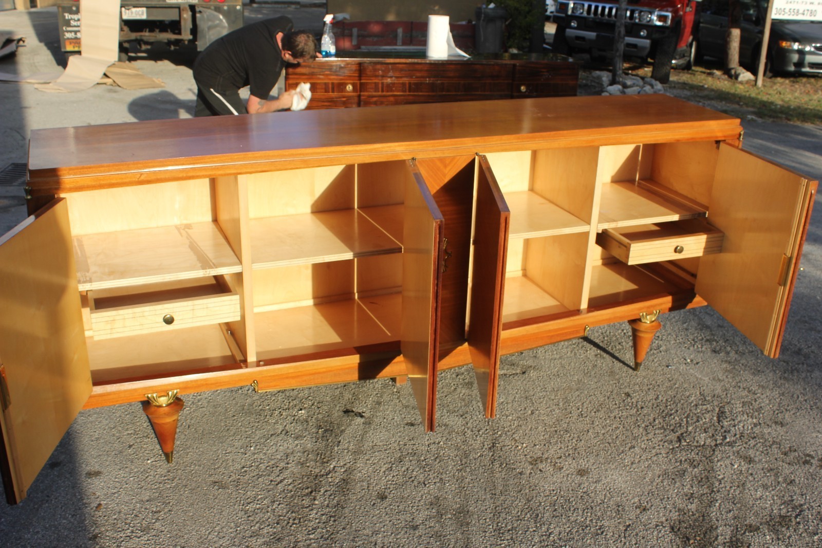 A French Art Deco Blonde Mahogany Buffet. Finished interior.