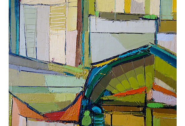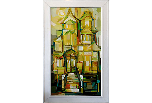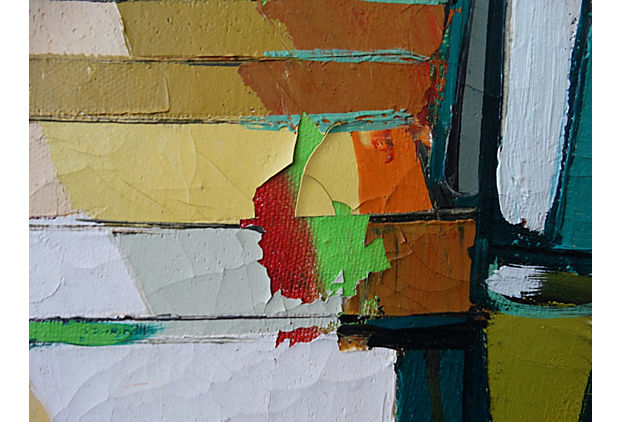 60s Mid Century Linear Abstract Oil Painting By John Black