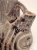 Created in 1956, this is a hand crafted pitcher done in a style that references the "grotesque" jug style. The pitcher measures 16.25 inches tall and 9 inches wide. The artist has signed by the artist " 56 Tye of California". With it's interesting subject and subtle coloring, this pitcher will be quite a conversation piece!