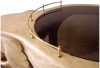 What a conversation piece! A rolling elephant bar with a brass gallery and smoked grey glass. The elephant is carved from wood and faux finished in a gloss distressed enamel finish with gilded tusks and toes and green eyes. The work top stands at H:38".