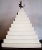 This is an interesting hand crafted table lamp made from wood and is created in the shape of a pyramid. The lamp base is 12 inches by 12 inches and the height to the top of the socket is 18 inches and then add the shade.